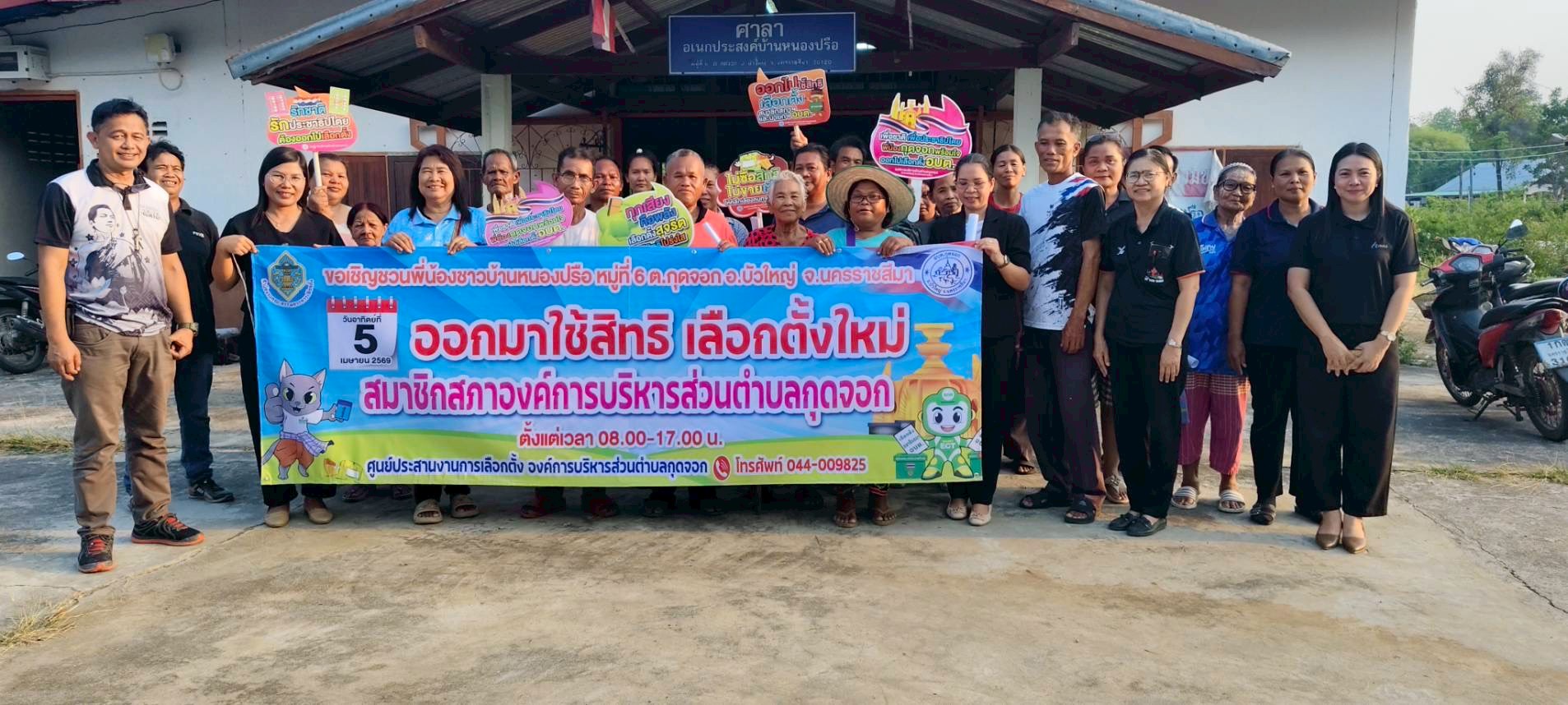 วันที่ ๒๖ มีนาคม ๒๕๖๙ นางสาวรัชนี แสงฮาด ผู้อำนวยการศูนย์ประสานงานการเลือกตั้ง อบต.กุดจอก และเจ้าหน้าที่ ได้ลงพื้นที่ประชาสัมพันธ์และรณรงค์ให้ประชาชนมาใช้สิทธิเลือกตั้งณ ศาลาประชาคม ม.๖ บ้านหนองปรือ เวลา ๑๗.๐๐ น.ตามคำสั่งคณะกรรมการการเลือกตั้ง ที่ ๓๗๕/๒๕๖๙ เรื่องให้มีการเลือกตั้งสมาชิกสภาองค์การบริหารส่วนตำบลกุดจอก เขตเลือกตั้งที่ ๖ ตำบลกุดจอก อำเภอบัวใหญ่ จังหวัดนครราชสีมา ใหม่