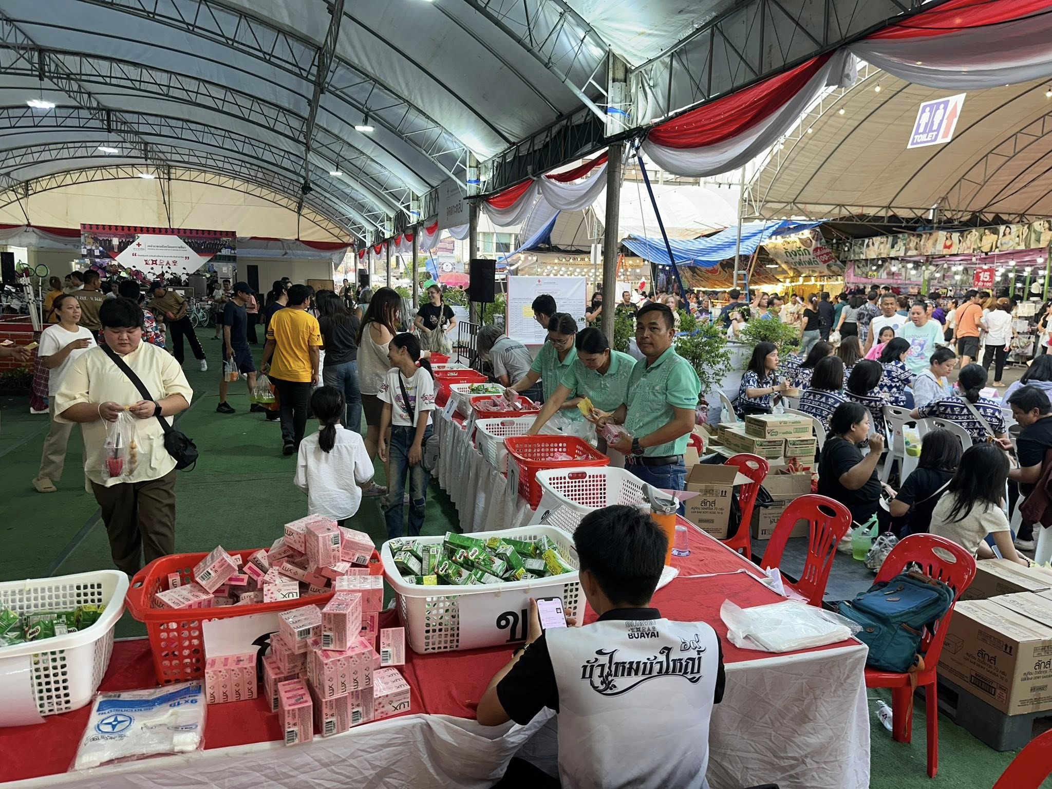 ภาพบรรยากาศช่วยงานออกร้านมัจฉากาชาด ในงานประเพณีงานฉลองชัยชนะท้าวสุรนารีและประเพณีบัวไหม บัวใหญ่