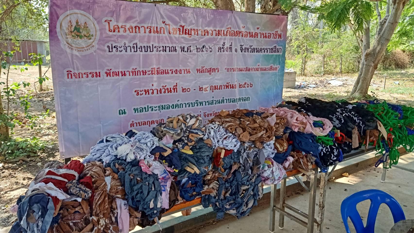 โครงการแก้ไขปัญหาความเดือดร้อนด้านอาชีพ หลักสูตรการสานเปลจากผ้าและเชือก ระหว่างวันที่ 20 - 24 กุมภาพันธ์ 2566 ณ หอประชุมองค์การบริหารส่วนตำบลกุดจอก อำเภอบัวใหญ่ จังหวัดนครราชสีมา