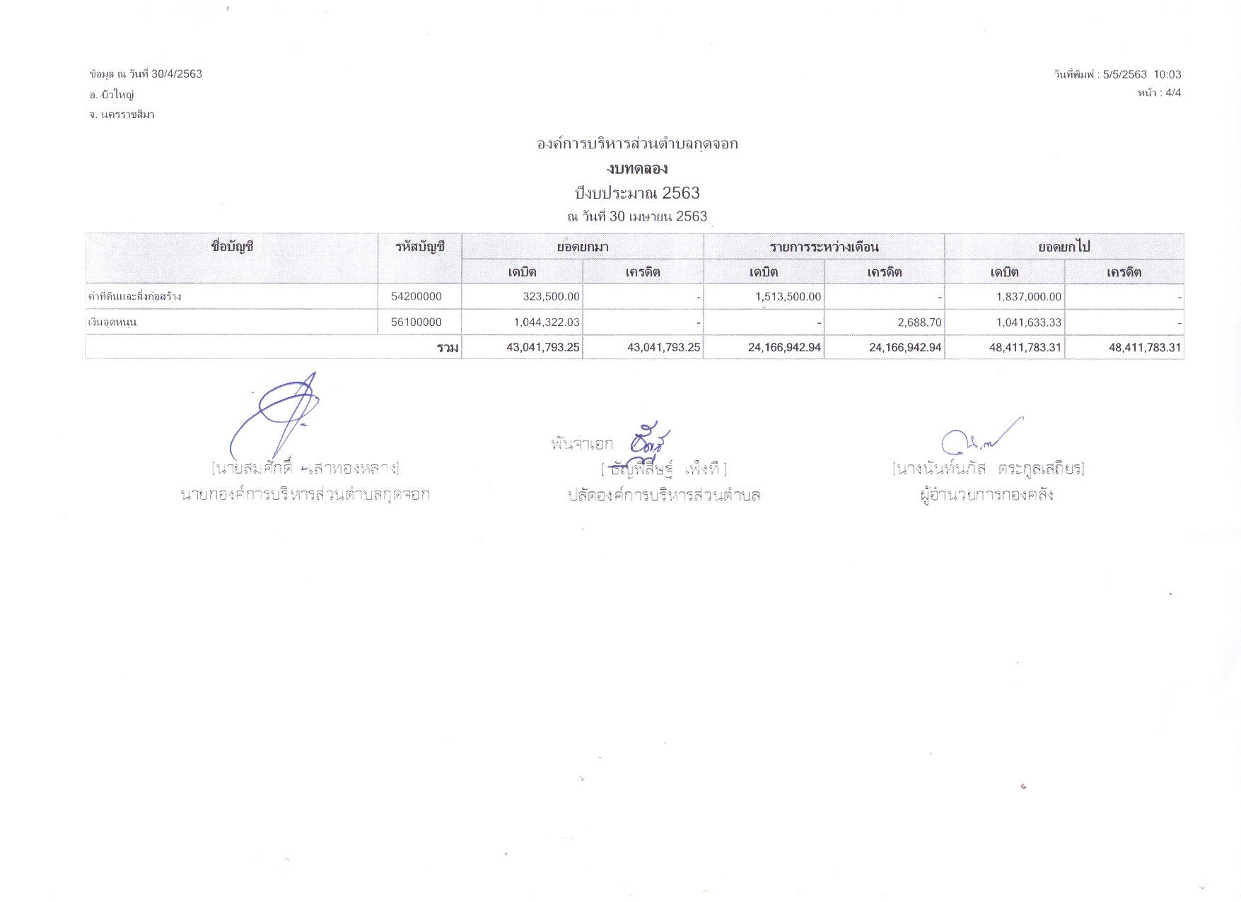 | งบทดลอง เดือน เมษายน 2563 หน้า 4